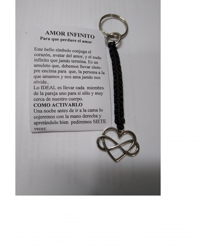 Este bello símbolo conjuga el corazón, avatar del amor, y el nudo infinito que jamás termina. Es un amuleto que, debemos llevar siempre encima para que, la persona a la que amamos y nos ama jamás nos olvide..