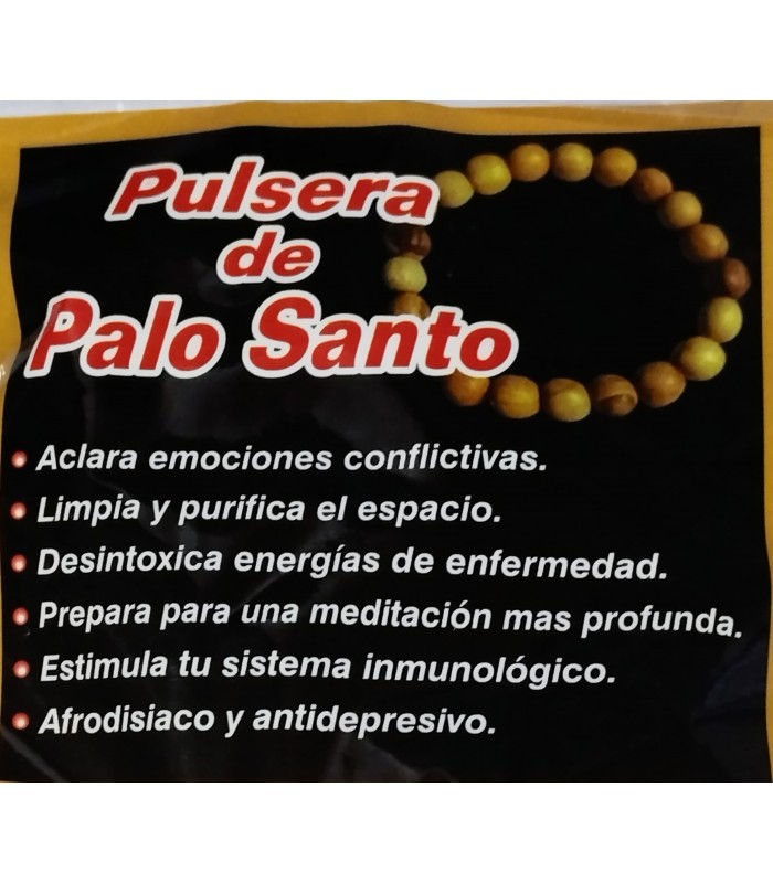 LLevar una pulsera de palo santo no tiene solamente un fin como accesorio de moda, también es una manera de protegerse, limpiar y alejar las energías negativas que puedan estar circulando. Por lo cual usar estas pulseras hechas en Perú cumplen dos funciones que te pueden traer beneficios. Esta pulsera proviene del sagrado árbol que nos entrega múltiples beneficios tanto curativo como espiritual. Alguna de sus propiedades son: expulsar las energías negativas y atraer las positivas. Ayuda a controlar las enfermedades causada por el estrés, ya que tiene propiedades de limpieza física y espiritual, su aroma ayuda a profundizar en los momentos espirituales de meditación. Afrodisíaco: su cualidad terrosa y enigmática ayuda a mejorar la relación amorosa y espiritual en las parejas.