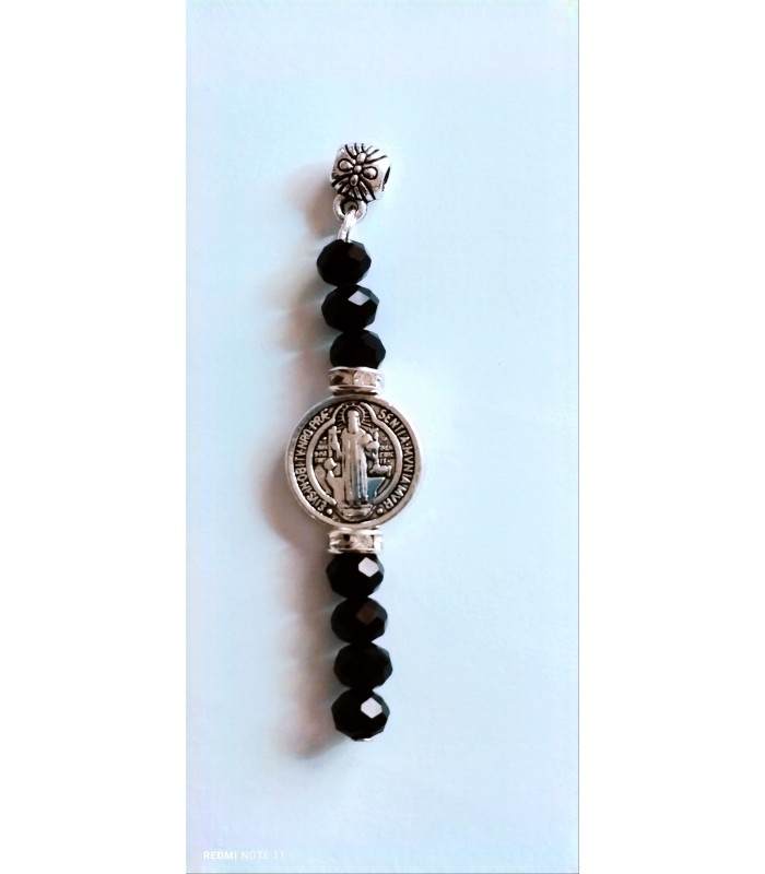 Colgante medalla san Benito, cristal tallado en negro, el cual nos aporta protección y nos aleja de las malas tentaciones
