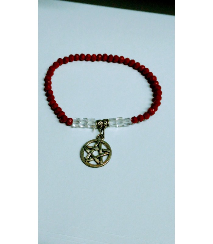 Pulsera elástica contra la envídia con cuentas de cristal ( rojo y blanco) y tetragramaton